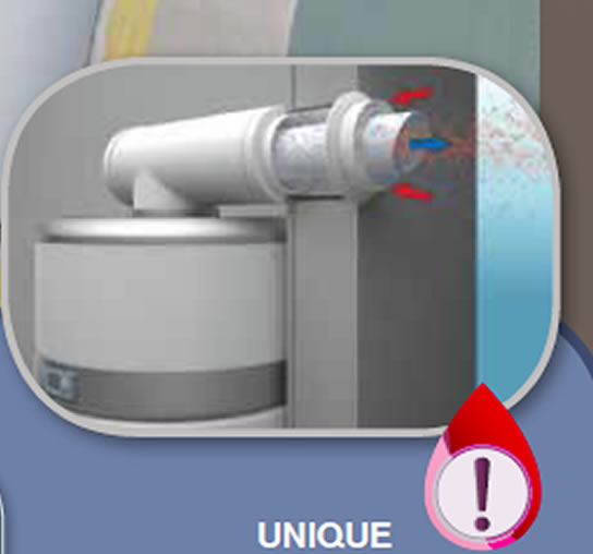 Longueur de conduite d'air maximum : Ventouse concentrique 5 m (diamètre 165mm) / en cheminée avec prise d'air : 10m (diamètre 80 mm)