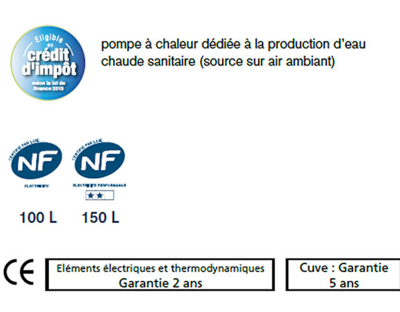 - Production d'une eau chaude sanitaire en prélevant dans l'air extérieur ou ambiant les calories disponibles et gratuites grâce à la pompe à chaleur intégrée