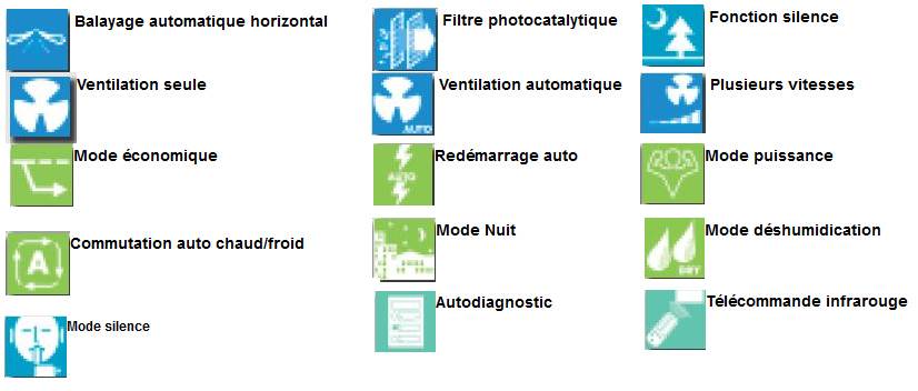 Débit d'air froid : 360 / 420 / 552 / 696 m3h