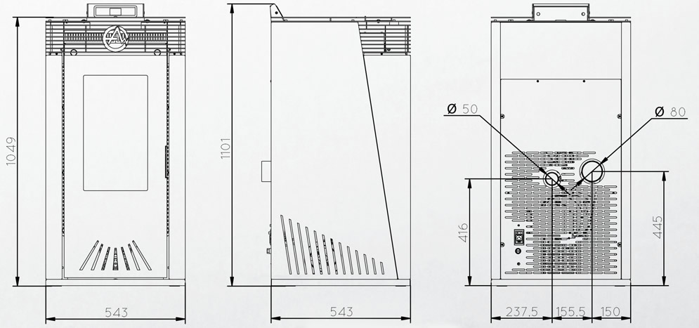 Diamètre pour la sortie des fumées : Ø 80 mm