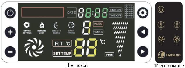 Équipé d'un thermostat numérique, télécommande fournie.