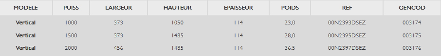 Puissances disponibles pour Radiateur bloc fonte - NOIROT - Calidou Pro XP - Vertical 2000 W