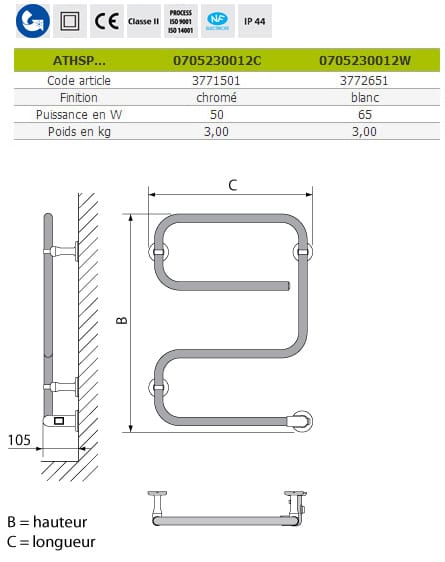 - Deux coloris : RAL 9010 (blanc) ou chromé.